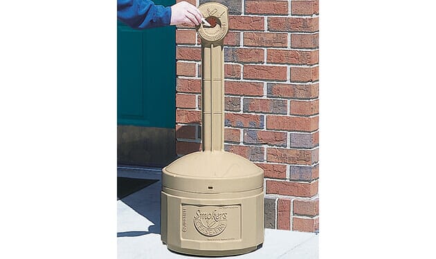 - Small, covered opening easily accepts cigarette butts while hiding cigarette litter and discouraging other trash