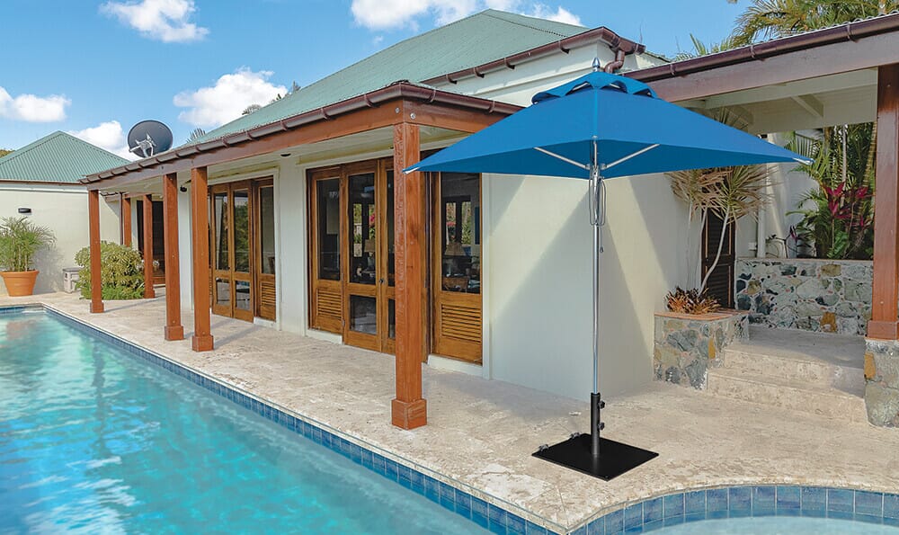 - Securely holds a freestanding umbrella upright