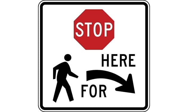 Stop Here for Pedestrians Right Arrow with Ped Symbol Sign