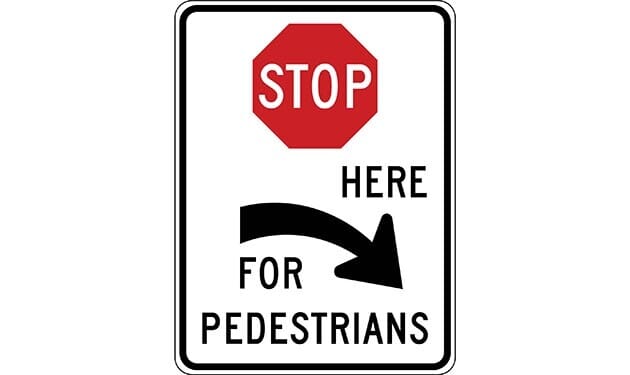 Stop Here for Pedestrians with Right Arrow Sign