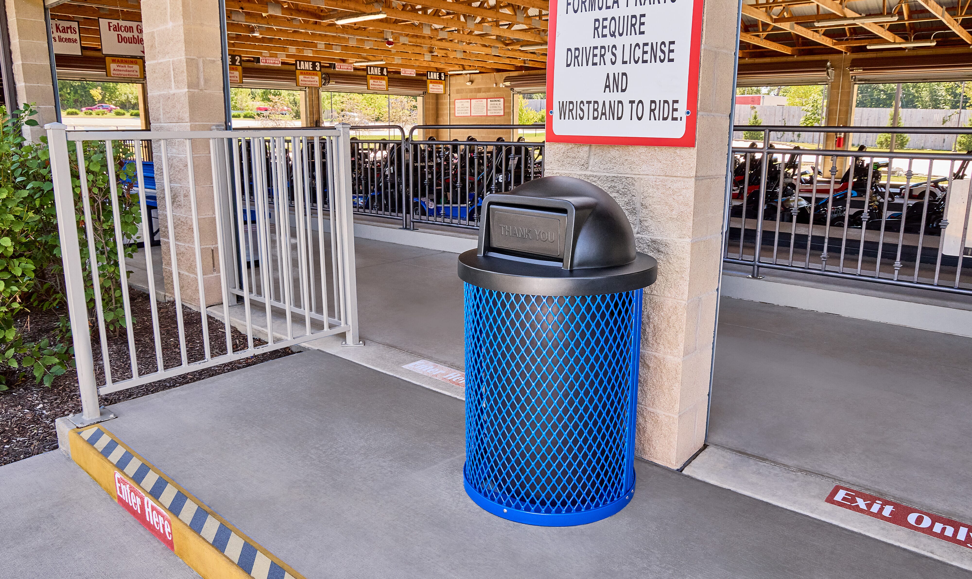 - Rust- and weather-resistant thermoplastic coated receptacle offered in 4 colors
