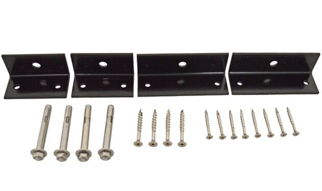 - Black powder-coated steel bench anchors and stainless steel hardware
