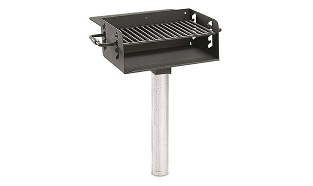 - Grate adjusts to 4 positions with heavy-duty cool spring handles