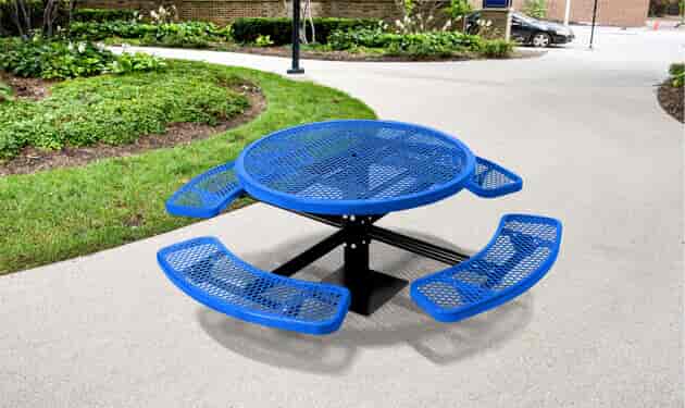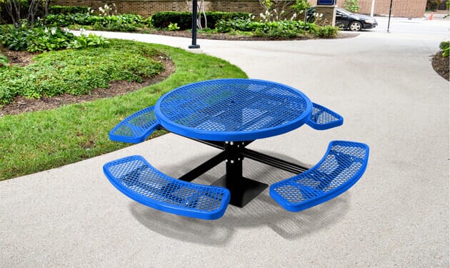 - Table and bench tops feature diamond shaped expanded metal with smooth, rounded corners for added safety