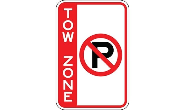 Tow Zone with No Parking Symbol - Side Bar Sign