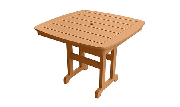 Subtle curved lines, paired with the natural look of recycled plastic, make this table the perfect patio dining spot.
