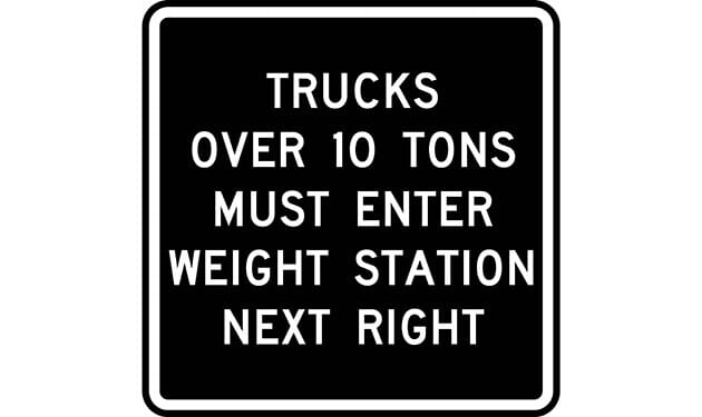 Trucks Over 10 Tons Must Enter Weigh Station Next Right Black Sign