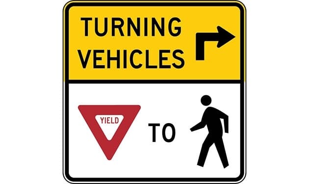 Turning Traffic Must Yield to Pedestrians with Right Arrow Sign