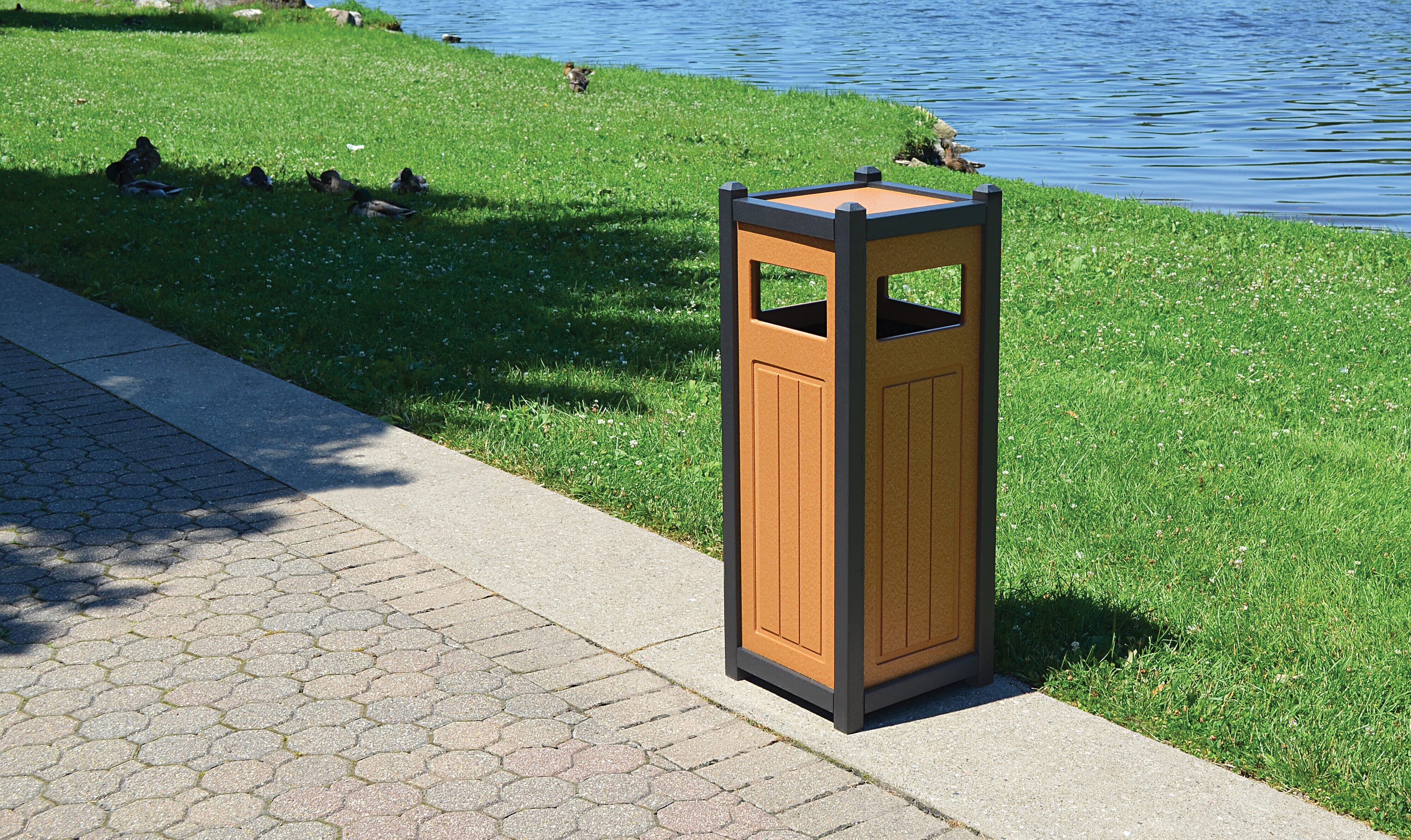 - 12-gallon capacity receptacle made of commercial-grade recycled plastic