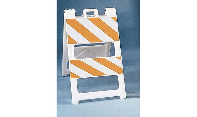 Plastic barricades won't rust, rot or peel, and come with a built-in carrying handle.