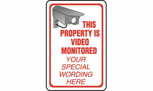 "This Property Is Video Monitored" followed by Your Own Text with Video Camera Symbol